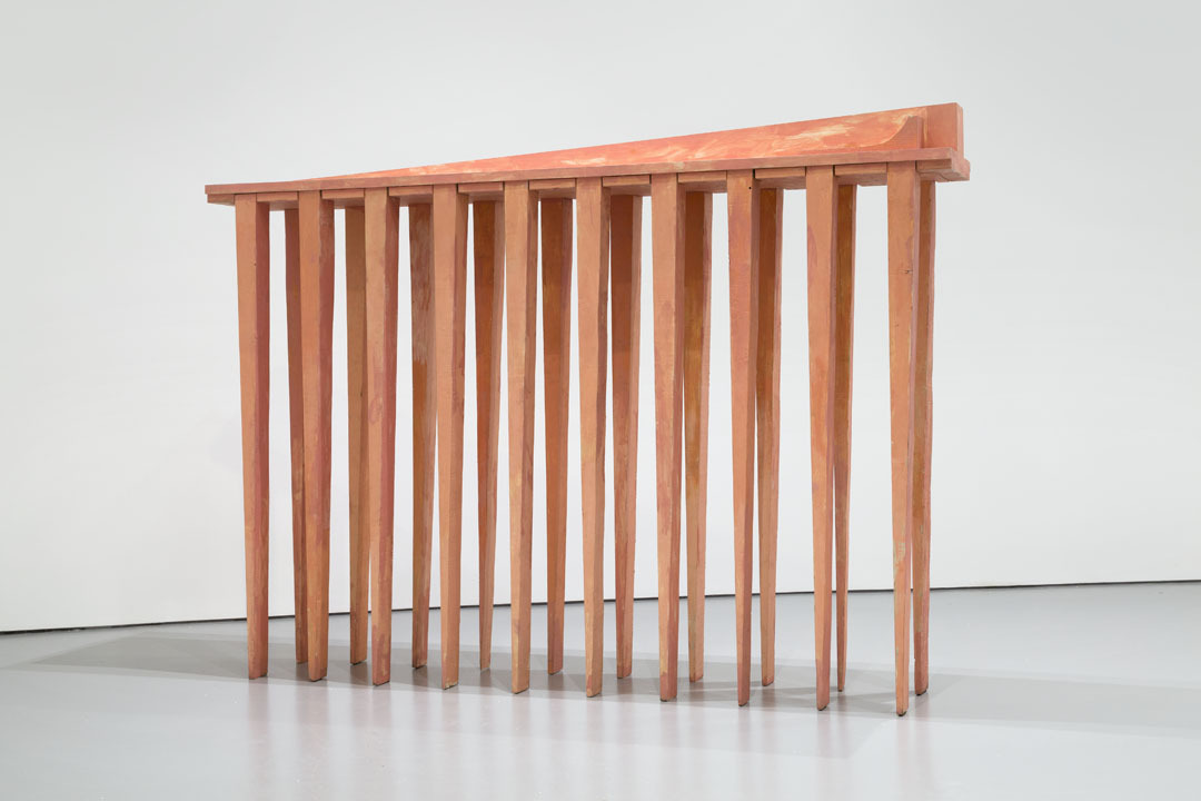 К этому периоду относится одна из самых известных ее скульптур «Слепой, ведущий слепого» (The Blind Leading the Blind, 1947). Это конструкция из 20 деревянных подпорок розового цвета, которые сужаются книзу, а вверху соединяются чем-то вроде непрочного мостика-стяжки. Работа удивляет своей простотой и кажущейся неустойчивостью. Сама Луиза говорила, что скульптура просто отражает её детское желание спрятаться под столом во время обеденных семейных скандалов.