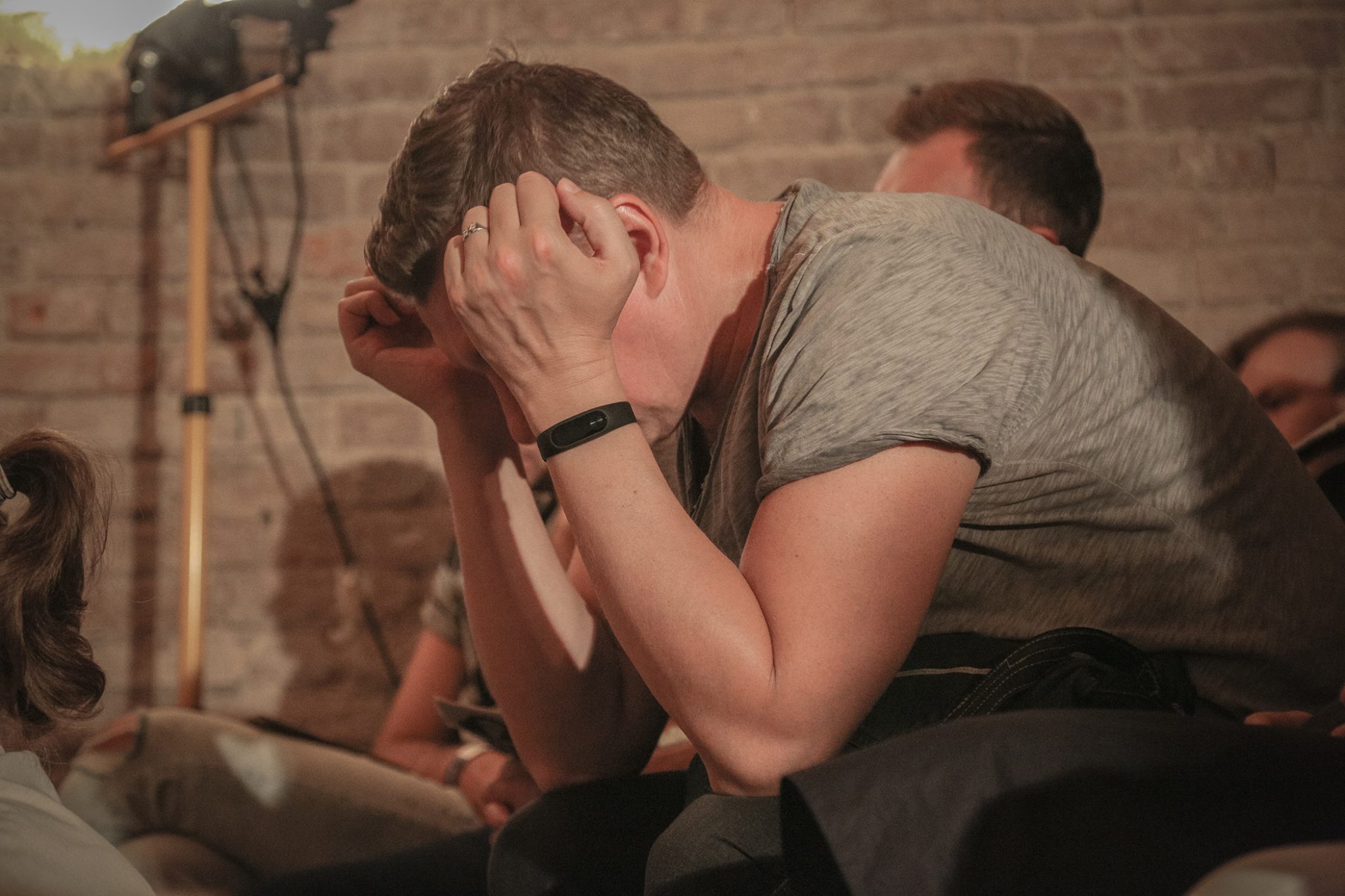 Такой театральный триллер. В этой новелле особенно чувствовалась иммерсивность: актеры выбегали через дверь, возвращались через окно, грузили и выносили из помещения предметы интерьера. Помимо этого была здесь и сцена, после которой весь зал, и я в том числе, замер от удивления. Так что в антракте я вышел хоть и в легком замешательстве, но однозначно с положительными ощущениями. Действию удается увлечь зрителя, а моменты взаимодействия с пространством впечатляют своей находчивостью.