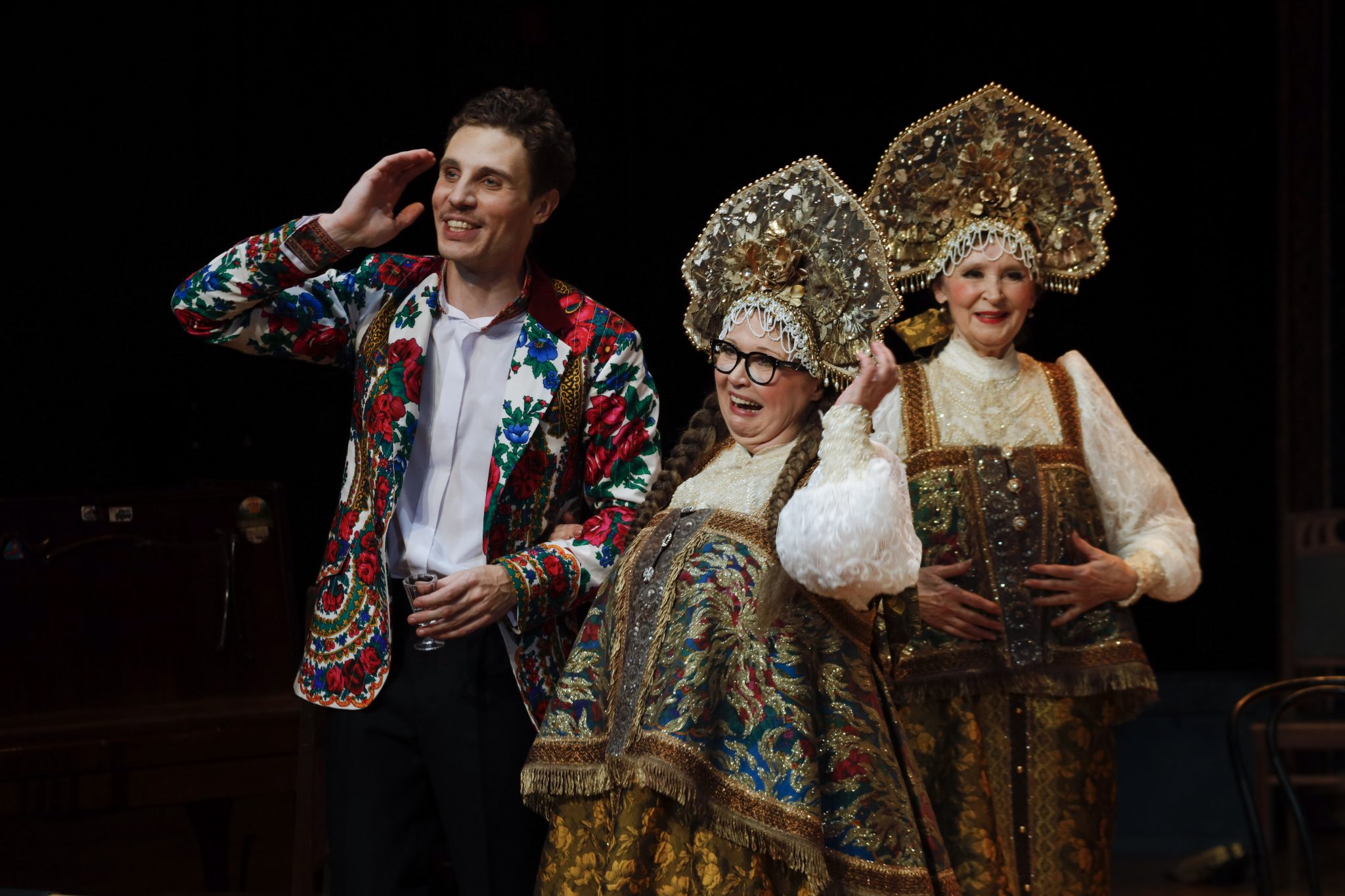 Не сразу понятно время, в котором происходит действие. Внутренняя наполненность исполнительниц, с которой они выходят на сцену создает атмосферу ранних восьмидесятых. Художник Максим Обрезков окруживший солисток ансамбля «Наитие» нарочитой советской эстетикой в виде картин соцреализма, опирающихся на бюст товарища Ульянова, деревянного паркета, сходящегося на экваторе с мозаичной композицией на основной стене сцены, также напускает в зал красного туману. Но после выхода руководителя ансамбля Сергея герои начинают делать селфи на фоне общего трэша, так что, дым рассеивается.