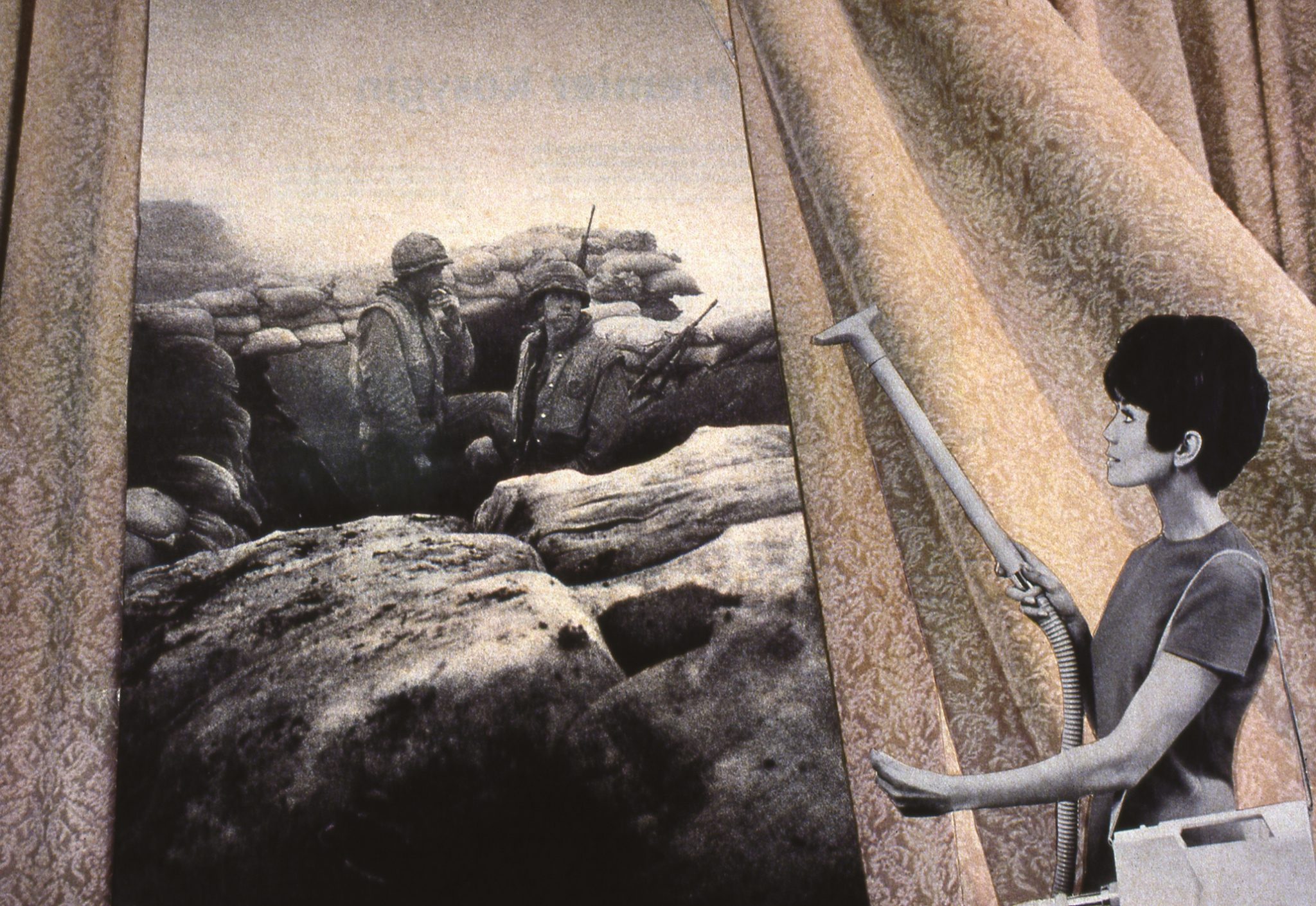 Одна из ранних серий работ Рослер – «Война с доставкой на дом: дом, милый дом» (House Beautiful: Bringing the War Home, 1967-1972). В ней художница использует метод фотомонтажа, сопоставляя два противоположных явления: войну и мир. На одной из фотографий серии изображена девушка, выполняющая привычную домашнюю работу. Она отдергивает штору - и перед ней открываются военные сцены: солдаты с оружием и серое, затянутое дымом небо.